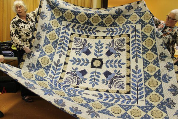 “Blue Vases”, one of my favourites! Hand applique, machine pieced and hand quilted by Anne.